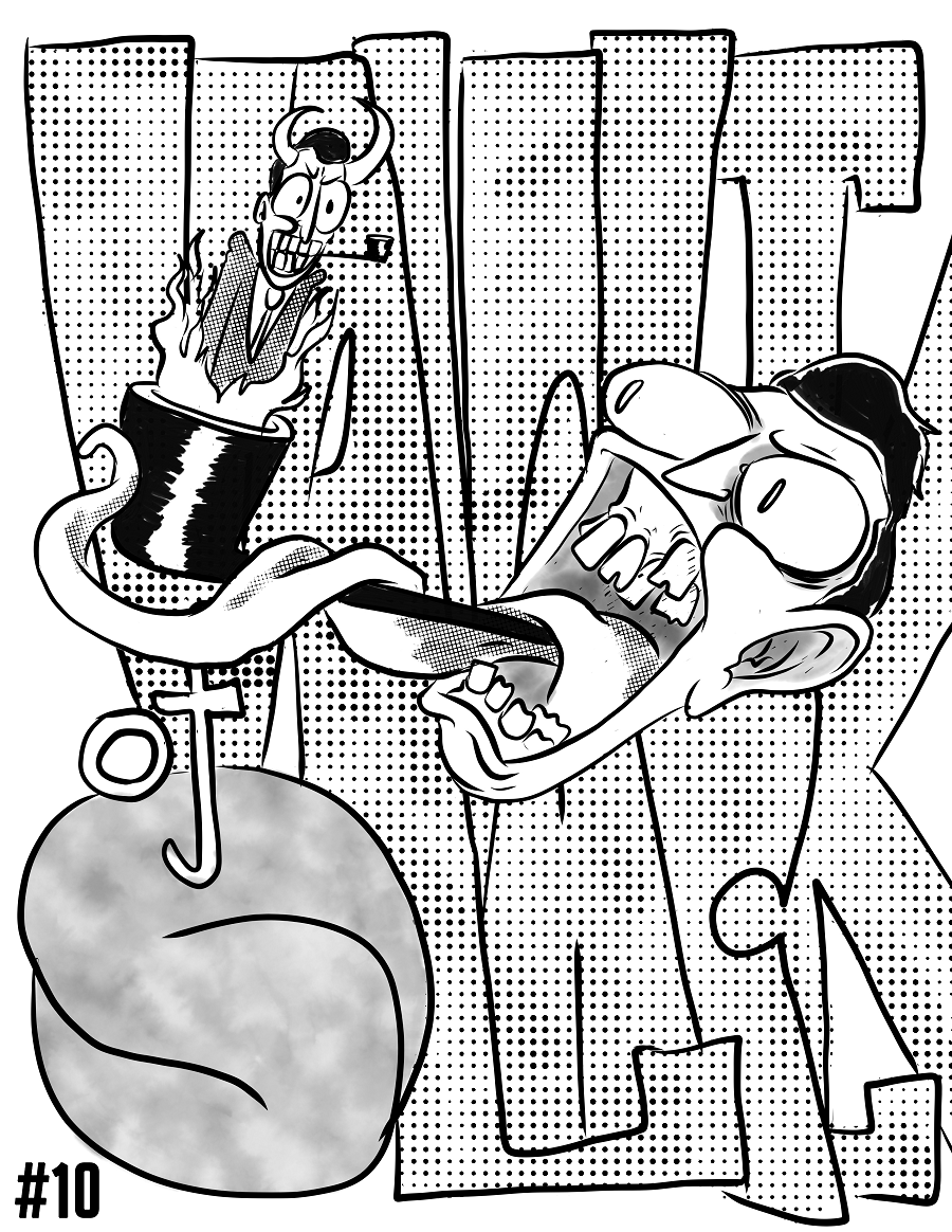 Get an in-depth dive on the Conspiracy mindset! Explore the dangerous Secret Chieves who's plots ensnare us! Discover dark secrets of famous Reverend Shining Path of Least Resistance! All accompanied by soul-soothing and gut-twisting art!